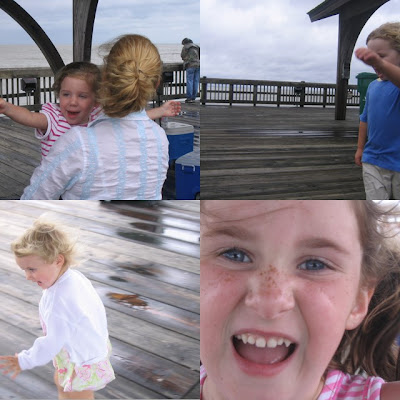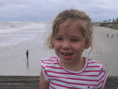 Well, the rain stopped, but the wind didn't. It cleared up for us, but we wound up with the photographer inside (preview her pics here). Before we left Tybee, the kids got to check out the pier together.