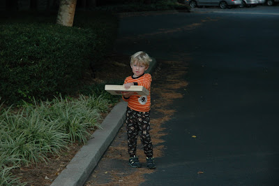 We got up early to cheer her on, and the route went right by Nana's house! H is practicing to be a pizza delivery boy with his puzzles (he loves those puzzles like oxygen).